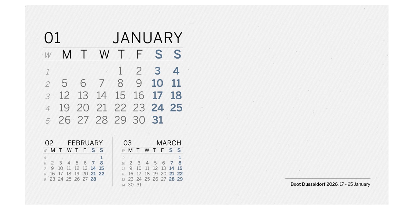 El calendario 2026 consta de 29 páginas con ilustraciones originales en acuarela inspiradas en barcos y el mar.