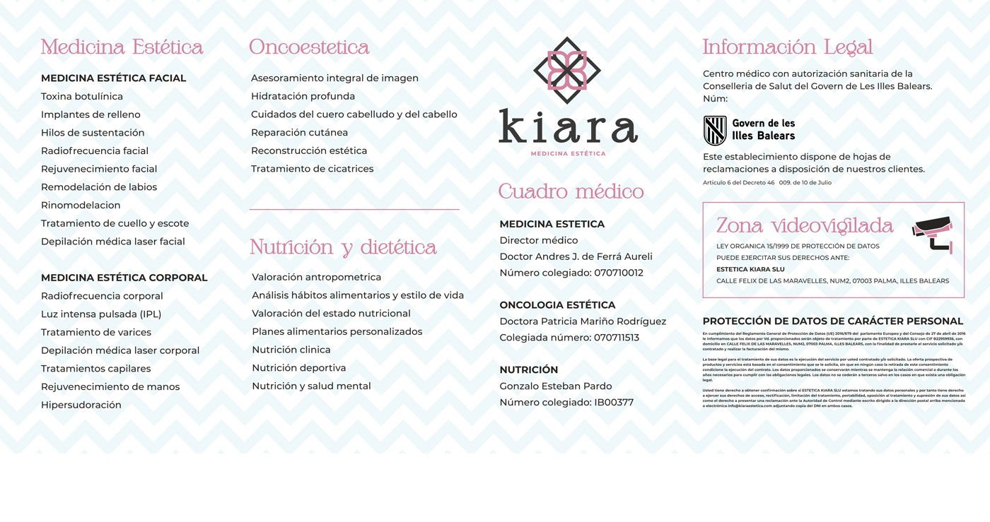 Kiara Medicina Estética cuenta ahora con una marca sólida, coherente y atractiva, aplicada en todos sus ámbitos—digitales, impresos y espaciales—permitiéndole transmitir confianza, profesionalidad y belleza desde la primera impresión.